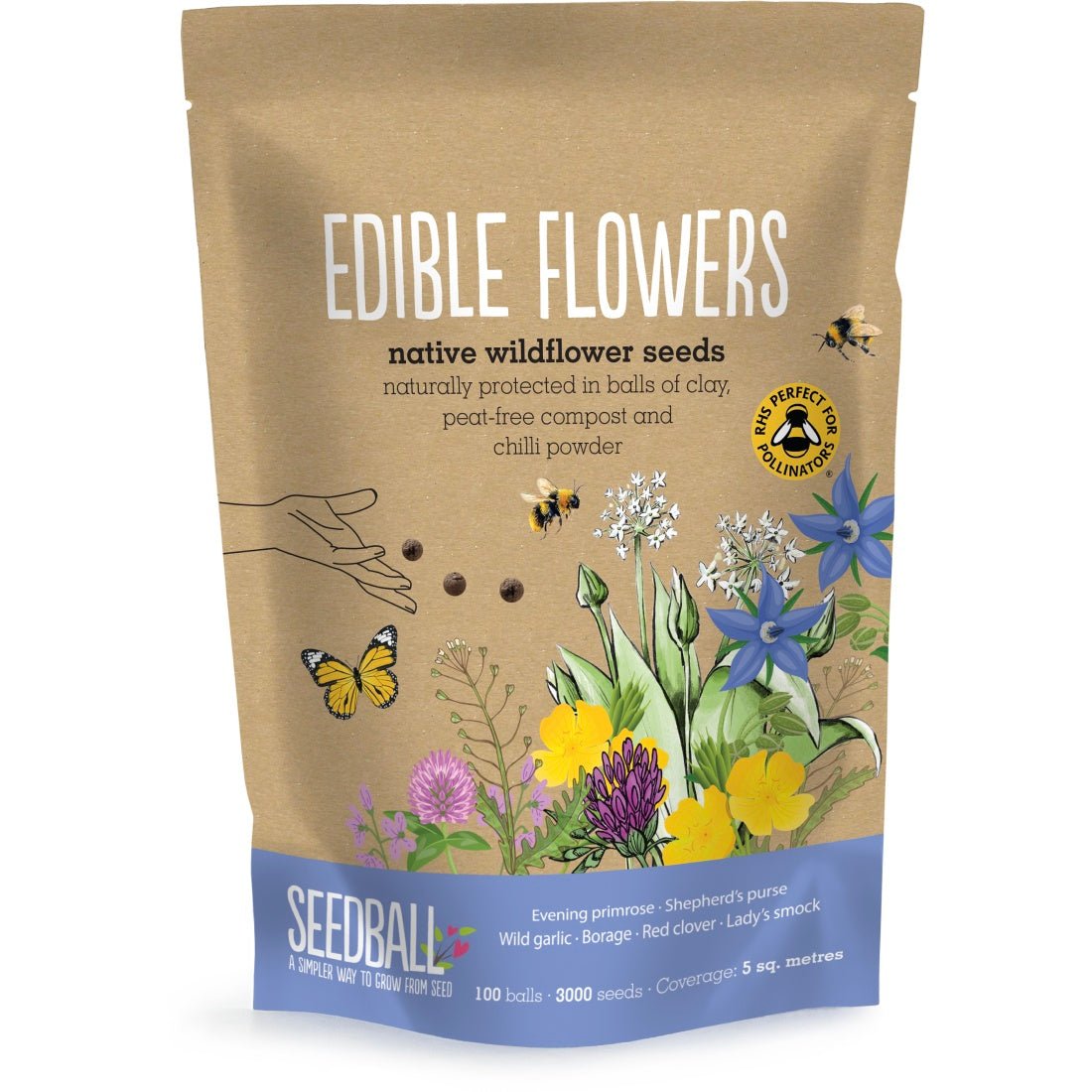 Featuring a collaboration with Wild Foods UK, this bag of 100 seed balls will cover a whopping 5 square metres and give you a fun, sustainable way to grow your own food. Each ball contains a mix of Primrose, Shepherd's Purse, Wild Garlic, Borage, Red Clover, Pignut and Lady's Smock - perfect for all types of gardens and even balcony or window boxes!