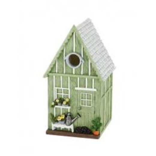 A fun and decorative addition to any garden and a cosy home for garden visitors, offering shelter and protection. This little garden shed is made from polyresin has been designed for the members of the tit family.