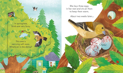 Springtime is full of excitement! The warmer days bring new growth, with leaves sprouting and flowers blooming. All creatures are hard at work, so take a peek under the blossom, amongst the meadow flowers and in the pond to find busy nests filled with chicks, baby bunnies, squirming tadpoles, and other lively animals.