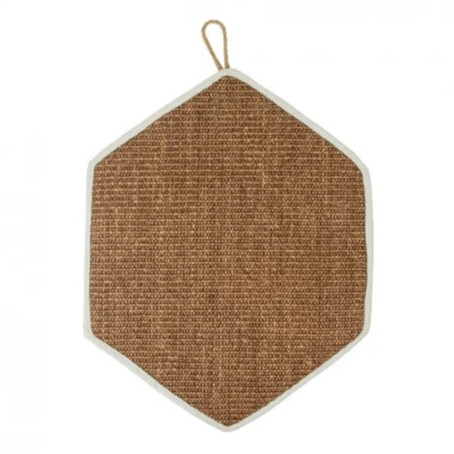 This cat mat is constructed with durable sisal, ensuring a long-lasting scratcher. It is also scratch-resistant and free of harmful toxins. The mat can be hung or placed on the floor for your cat's enjoyment. It meets cats' natural behaviors of rolling, stretching, and scratching, promoting healthy and stress-relieving activity.